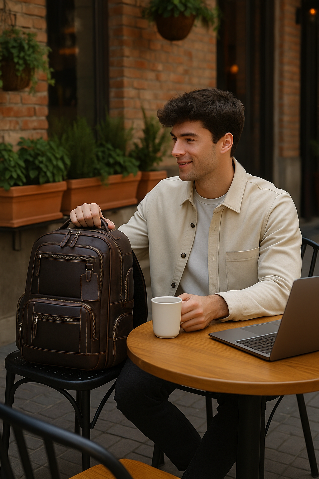 You want a backpack that lasts — not one that frays after a few months. This full grain leather backpack is made to take years of use without losing shape or strength.