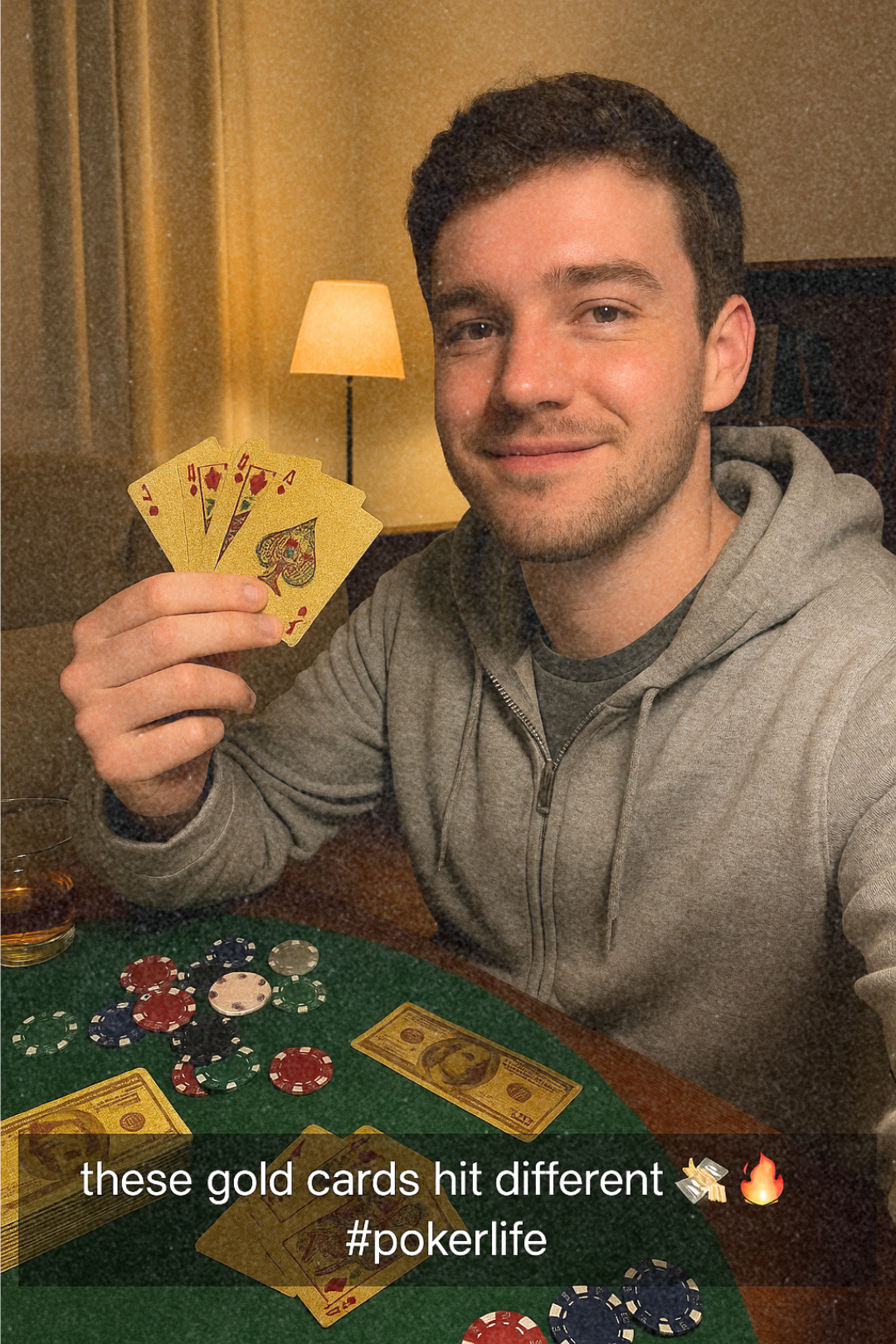 The problem is the weak paper deck that creases, stains, and dies on contact with moisture. This 24K gold foil poker deck is built from flexible, waterproof PET/PVC material to eliminate that failure point. It is your permanent upgrade for game night.